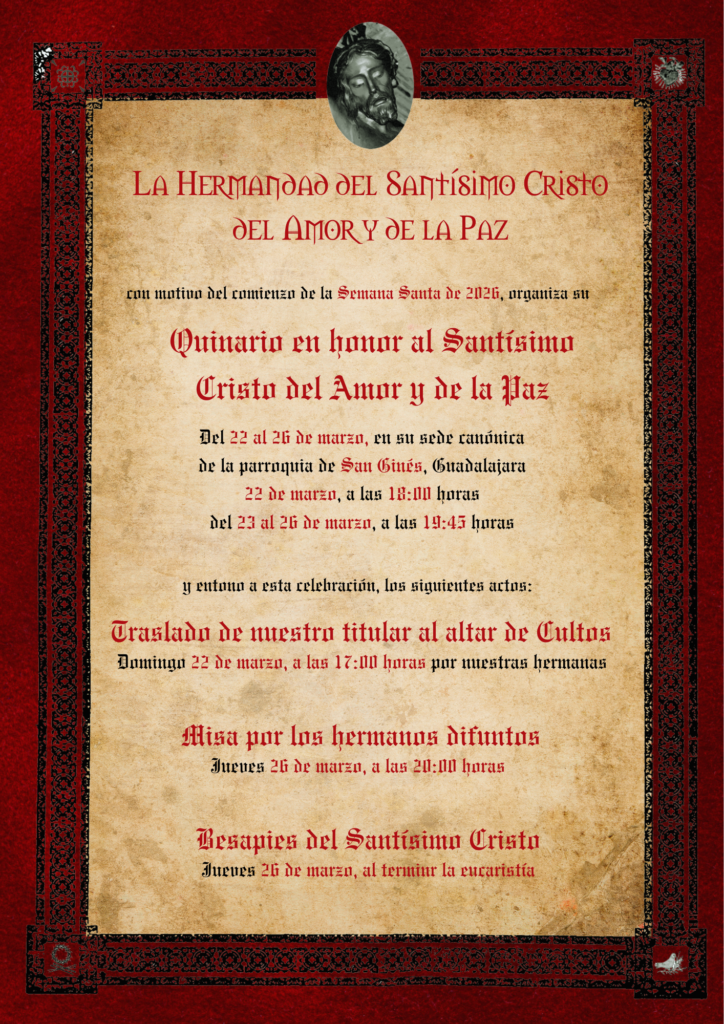 Quinario, Sin categoríaQuinario 2026 Quinario, Sin categoría / Hermandad Stmo Cristo del Amor y de la Paz Guadalajara Actos oficiales de Semana Santa 2026
