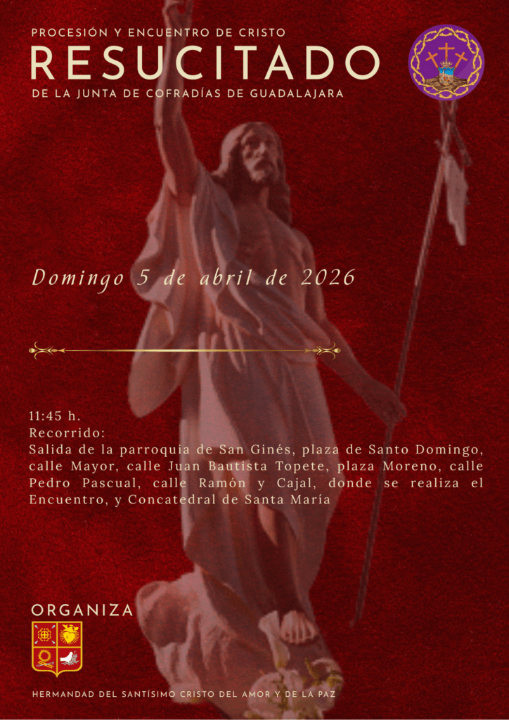 Cartel, Quinario, Sin categoríaProcesión Resucitado 2026 Cartel, Quinario, Sin categoría / Hermandad Stmo Cristo del Amor y de la Paz Guadalajara Actos oficiales de Semana Santa 2026